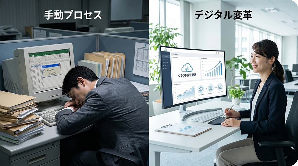 うなると、計算処理に時間がかかるばかりか、フリーズや強制終了のリスクも高まります。業務スピードが低下し始めたら、受発注システムへの移行を考えるサインと言えるでしょう。