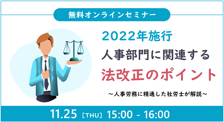 | テーマ | 「人事部門様向け 2022年に施行される人事部門に関連する法改正を解説」 |